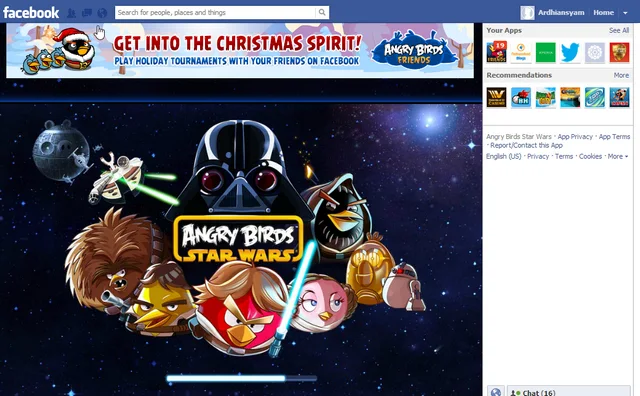 Setelah sukses di berbagai platform populer seperti Android dan iOS, kemarin (17/12/2012) Rovio secara resmi mengumumkan perilisan game Angry Birds Star Wars untuk Facebook. Secara garis besar, permainan Angry Birds Star Wars untuk Facebook hampir sama dengan versi mobile-nya, namun di sisi lain, Facebook sebagai jejaring sosial tentu dapat memberikan nilai lebih pada permainan ini (bisa berkompetisi dengan teman-teman Anda misalnya).